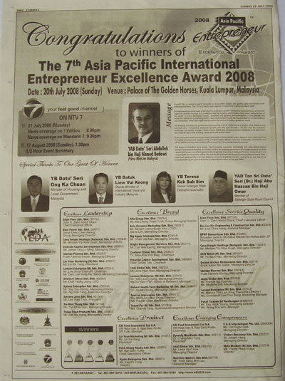 Asia Pacific International Entrepreneur Excellence Award 2008 (Excellence Brand)