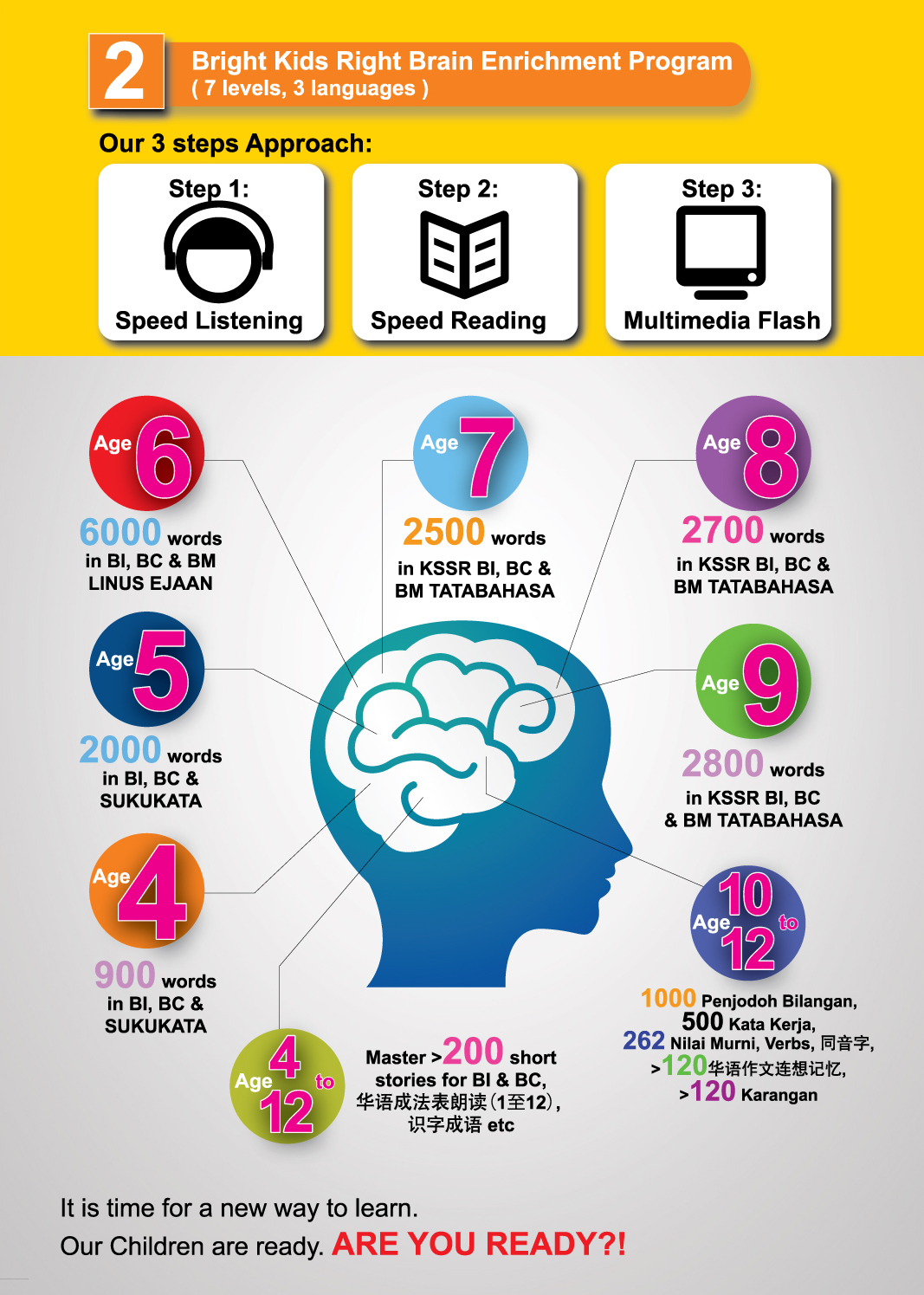 This is the job of Bright Kids, right brain expert that enriches children with greater confidence, sharper mind, dedicated focus, better memory, accelerated learning, and faster mastery. We have now come up with various right brain training programs that help children from Age 3 to 12 to activate their minds more than they actually will in their life of formal education.